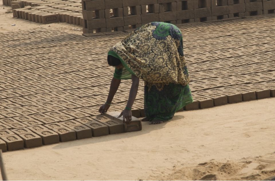 Una sola tappa lungo questo lungo rettilineo, in una "fabbrica" di mattoni a cielo aperto. Gli sguardi dei bambini sono "adulti" anche mentre giocano. Le donne trasportano sul capo pesantissime plie di mattoni, mostrando una forza e resistenza a me incomprensibile. Gli uomini lavorano senza sosta, corpi minuti, tesi e resistenti.